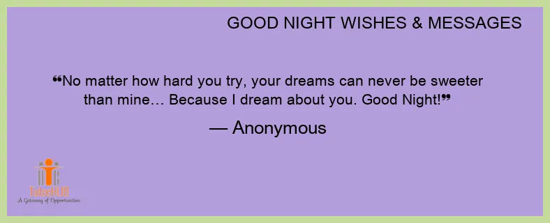No matter how hard you try, your dreams can never be sweeter than mine… Because I dream about you. Good Night!