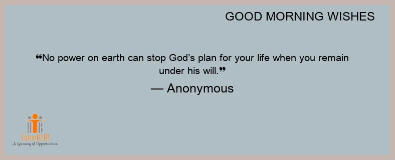 No power on earth can stop God’s plan for your life when you remain under his will.