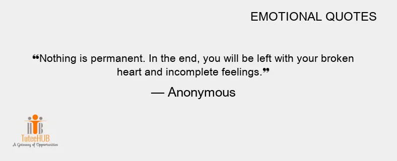 Nothing is permanent. In the end, you will be left with your broken heart and incomplete feelings.