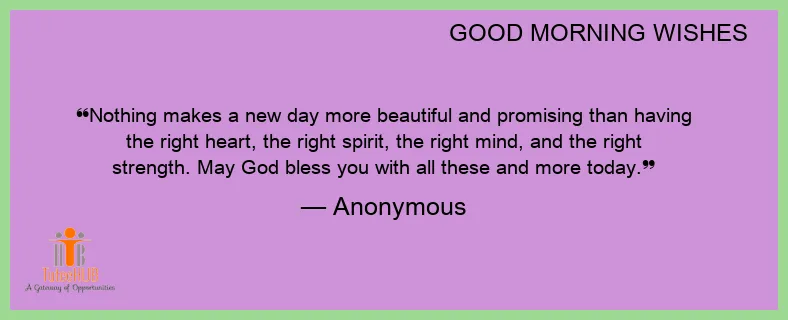 Nothing makes a new day more beautiful and promising than having the right heart, the right spirit, the right mind, and the right strength. May God bless you with all these and more today.