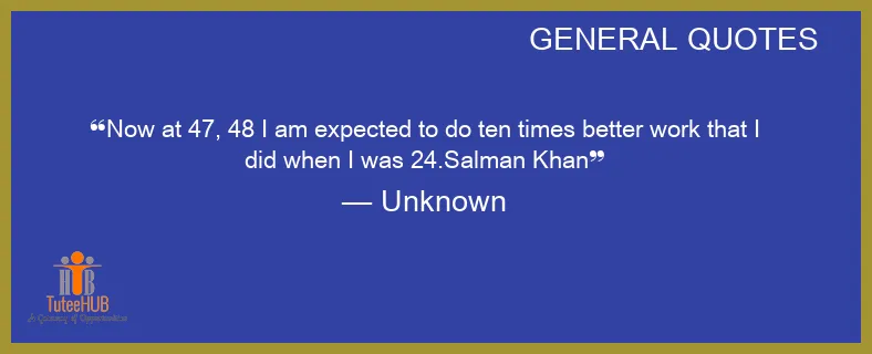 Now at 47, 48 I am EXPECTED to do TEN TIMES BETTER WORK that I did when I was 24.Salman Khan