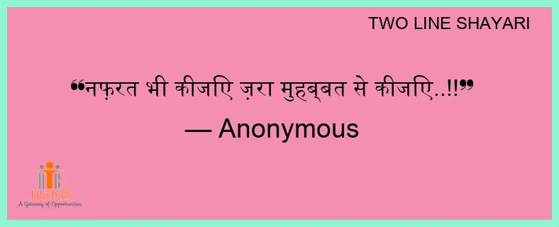 नफ़रत भी कीजिए ज़रा मुहब्बत से कीजिए..!!