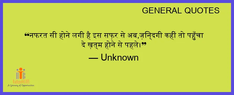 नफरत सी होने लगी है इस सफ़र से अब,ज़िन्दगी कहीं तो पहुँचा दे ख़त्म होने से पहले।