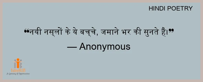 नयी नस्लों के ये बच्चे, जमाने भर की सुनते हैं।