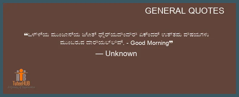 ಒಳ್ಳೆಯ ಮುಂಜಾನೆಯ ಜೊತೆ ಧೈರ್ಯದಿಂದಿರಿ ಏಕೆಂದರೆ ಉತ್ತಮ ವಿಷಯಗಳು ಮುಂಬರುವ ದಾರಿಯಲ್ಲಿವೆ. - GOOD MORNING