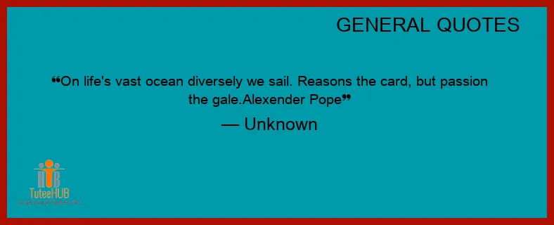 On LIFE's vast ocean diversely we sail. REASONS the CARD, but passion the gale.Alexender POPE