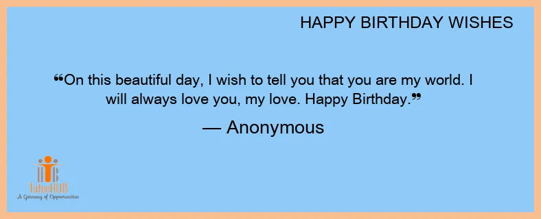 On this beautiful day, I wish to tell you that you are my world. I will always love you, my love. Happy Birthday.
