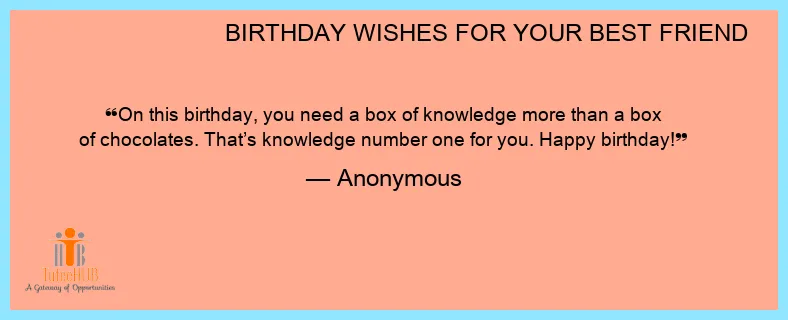 On this birthday, you need a box of knowledge more than a box of chocolates. That’s knowledge number one for you. Happy birthday!