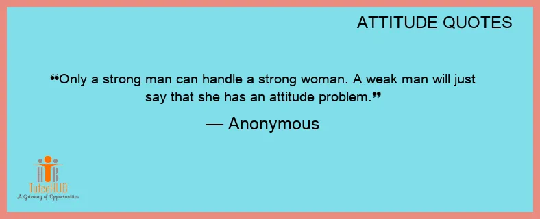 Only a strong man can handle a strong woman. A weak man will just say that she has an attitude problem.