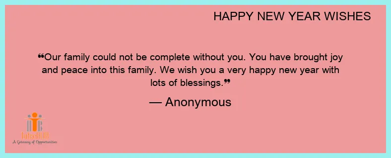 Our family could not be complete without you. You have brought joy and peace into this family. We wish you a very happy new year with lots of blessings.
