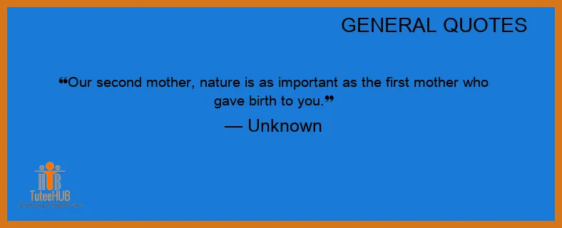 Our SECOND mother, NATURE is as important as the FIRST mother who GAVE birth to you.