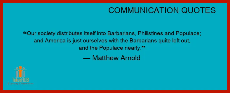 Our SOCIETY distributes itself into Barbarians, Philistines and Populace; and AMERICA is just ourselves with the Barbarians QUITE LEFT out, and the Populace NEARLY.
