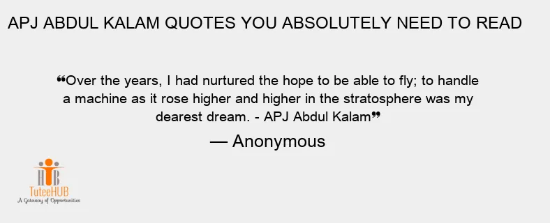Over the years, I had nurtured the hope to be able to fly; to handle a machine as it rose higher and higher in the stratosphere was my dearest dream. - APJ Abdul Kalam