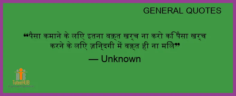 पैसा कमाने के लिए इतना वक़्त खर्च ना करो कि पैसा खर्च करने के लिए ज़िन्दगी में वक़्त ही ना मिले