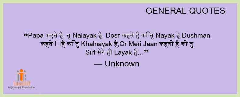PAPA कहते है, तु Nalayak है, Dοsτ कहते है कि तु Nayak हे,Dushman कहते ‬है कि तु Khalnayak है,Or Meri JAAN कहती है की तु Sirf मेरे ही Layak है…