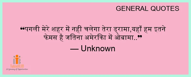 पगली मेरे शहर में नहीं चलेगा तेरा ड्रामा,यहाँ हम इतने फेमस है जितना अमेरिका में ओबामा..