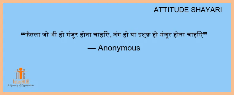 फैसला जो भी हो मंजूर होना चाहिए, जंग हो या इश्क़ हो मंजूर होना चाहिए