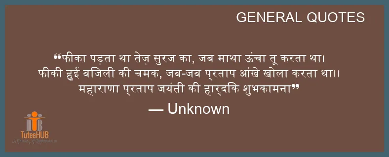 फीका पड़ता था तेज़ सुरज का, जब माथा ऊंचा तू करता था। फीकी हुई बिजली की चमक, जब-जब प्रताप आंखे खोला करता था।। महाराणा प्रताप जयंती की हार्दिक शुभकामना