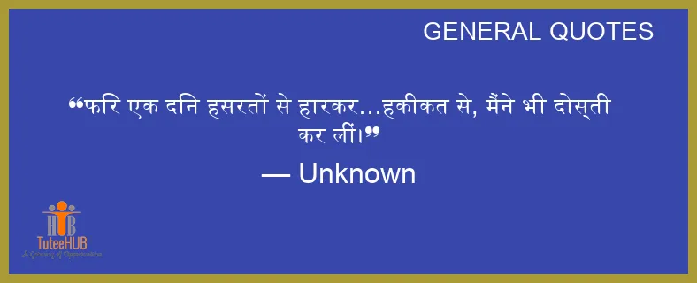 फिर एक दिन हसरतों से हारकर…हकीकत से, मैंने भी दोस्ती कर लीं।
