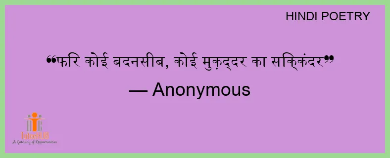 फिर कोई बदनसीब, कोई मुक़द्दर का सिक्कंदर