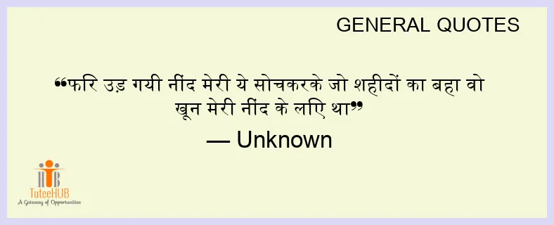 फिर उड़ गयी नींद मेरी ये सोचकरके जो शहीदों का बहा वो खून मेरी नींद के लिए था