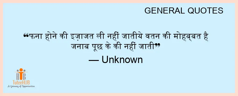 फना होने की इज़ाजत ली नहीं जातीये वतन की मोहब्बत है जनाब पूछ के की नहीं जाती