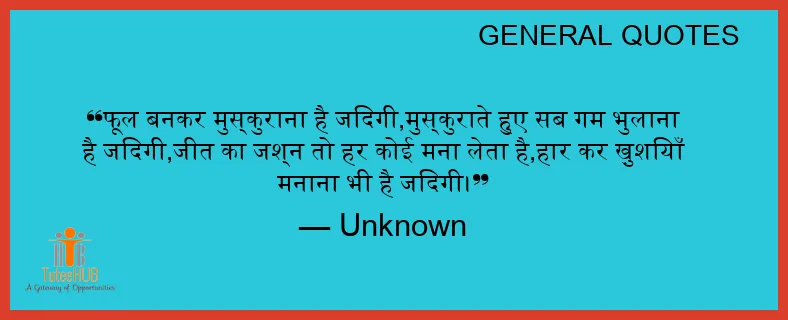 फूल बनकर मुस्कुराना है जिंदगी,मुस्कुराते हुए सब गम भुलाना है जिंदगी,जीत का जश्न तो हर कोई मना लेता है,हार कर ख़ुशियाँ मनाना भी है जिंदगी।