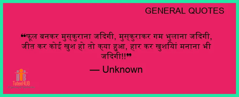 फूल बनकर मुस्कुराना जिंदगी, मुस्कुराकर गम भुलाना जिंदगी, जीत कर कोई खुश हो तो क्या हुआ, हार कर खुशियां मनाना भी जिंदगी!!