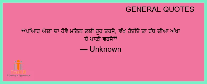 ਪਿਆਰ ਐਦਾਂ ਦਾ ਹੋਵੇ ਮਿਲਨ ਲਈ ਰੂਹ ਤਰਸੇ, ਵੱਖ ਹੋਈਏ ਤਾਂ ਰੱਬ ਦੀਆ ਅੱਖਾ ਚੋ ਪਾਣੀ ਵਰਸੇ