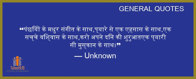 पंछियों के मधुर संगीत के साथ,प्यारे से एक एहसास के साथ,एक सच्चे विश्वास के साथ,करो अपने दिन की शुरुआतएक प्यारी सी मुस्कान के साथ।