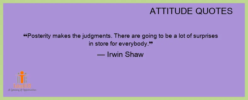 POSTERITY MAKES the judgments. There are GOING to be a lot of surprises in store for everybody.