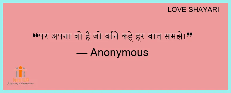 पर अपना वो है जो बिन कहे हर बात समझे।
