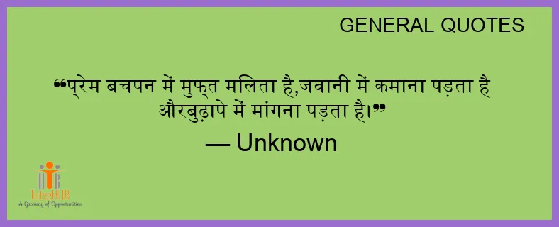 प्रेम बचपन में मुफ्त मिलता है,जवानी में कमाना पड़ता है औरबुढ़ापे में मांगना पड़ता है।