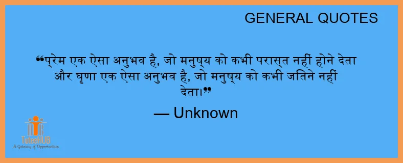 प्रेम एक ऐसा अनुभव है, जो मनुष्य को कभी परास्त नहीं होने देता और घृणा एक ऐसा अनुभव है, जो मनुष्य को कभी जितने नहीं देता।