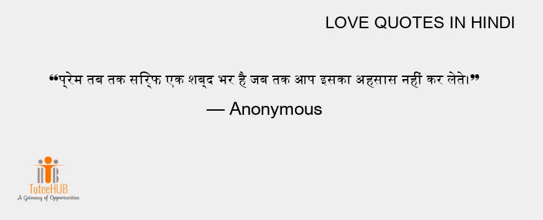 प्रेम तब तक सिर्फ एक शब्द भर है जब तक आप इसका अहसास नहीं कर लेते।