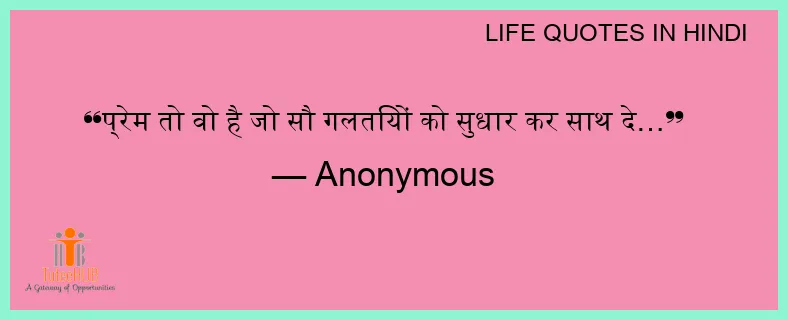 प्रेम तो वो है जो सौ गलतियों को सुधार कर साथ दे…