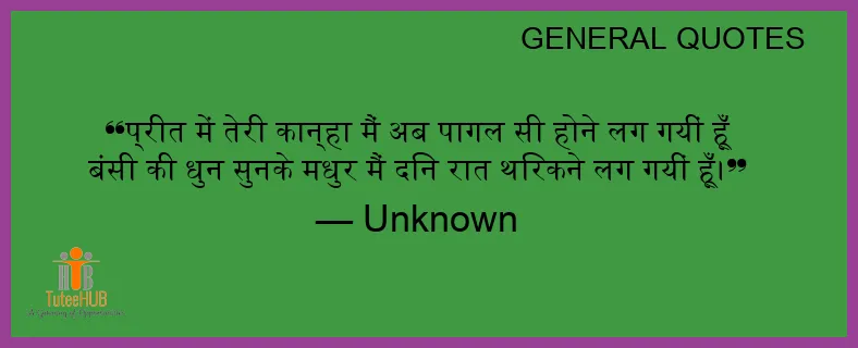 प्रीत में तेरी कान्हा मैं अब पागल सी होने लग गयीं हूँ बंसी की धुन सुनके मधुर मैं दिन रात थिरकने लग गयीं हूँ।