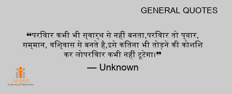 परिवार कभी भी स्वार्थ से नहीं बनता,परिवार तो प्यार, सम्मान, विश्वास से बनते है,इसे कितना भी तोड़ने की कोशिश कर लोपरिवार कभी नहीं टूटेगा।