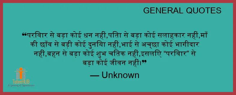 परिवार से बड़ा कोई धन नहीं,पिता से बड़ा कोई सलाहकार नहीं,माँ की छाँव से बड़ी कोई दुनिया नहीं,भाई से अच्छा कोई भागीदार नहीं,बहन से बड़ा कोई शुभ चिंतक नहीं,इसलिए “परिवार” से बड़ा कोई जीवन नहीं।