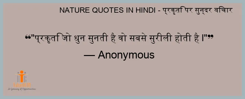 "प्रकृति जो धुन सुनती है वो सबसे सुरीली होती है I"