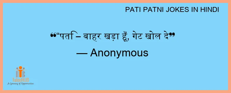 “पति – बाहर खड़ा हूँ, गेट खोल दे