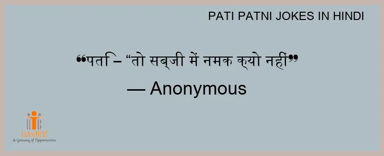 पति – “तो सब्जी में नमक क्यो नहीं