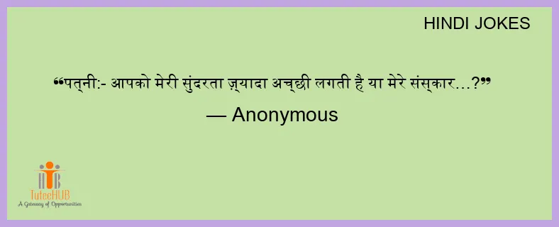 पत्नी:- आपको मेरी सुंदरता ज़्यादा अच्छी लगती है या मेरे संस्कार…?