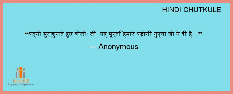 पत्नी मुस्कुराते हुए बोली: जी, यह मूर्ति हमारे पड़ोसी गुप्ता जी ने दी है…