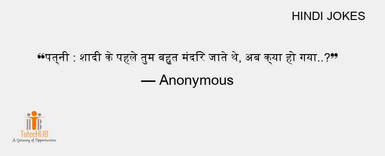 पत्नी : शादी के पहले तुम बहुत मंदिर जाते थे, अब क्या हो गया..?