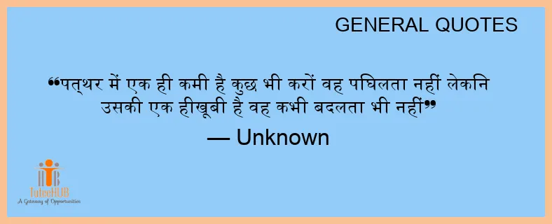 पत्थर में एक ही कमी है कुछ भी करों वह पिघलता नहीं लेकिन उसकी एक हीखूबी है वह कभी बदलता भी नहीं
