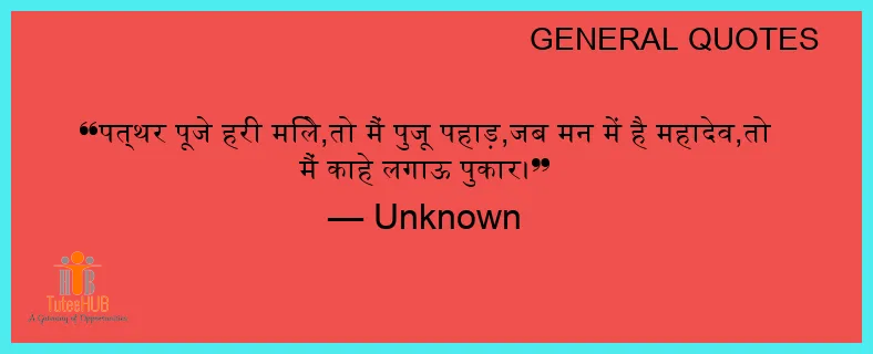 पत्थर पूजे हरी मिले,तो मैं पुजू पहाड़,जब मन में है महादेव,तो मैं काहे लगाऊ पुकार।