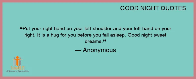 Put your right hand on your left shoulder and your left hand on your right. It is a hug for you before you fall asleep. Good night sweet dreams.