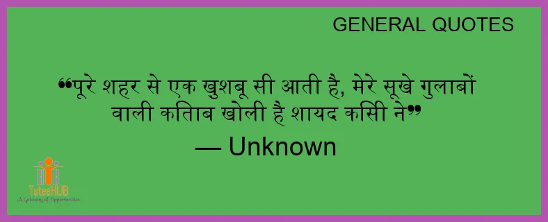 पूरे शहर से एक ख़ुशबू सी आती है, मेरे सूखे गुलाबों वाली किताब खोली है शायद किसी ने