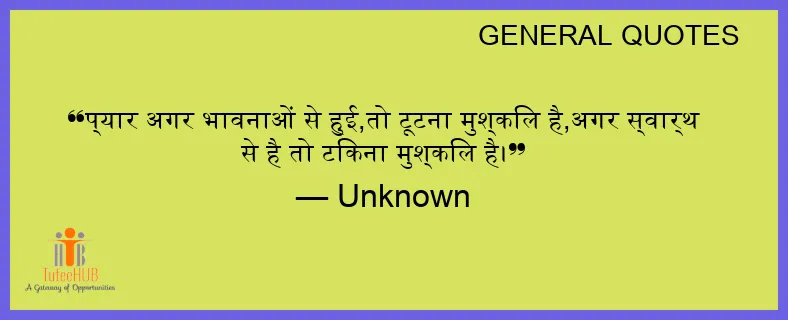 प्यार अगर भावनाओं से हुई,तो टूटना मुश्किल है,अगर स्वार्थ से है तो टिकना मुश्किल है।